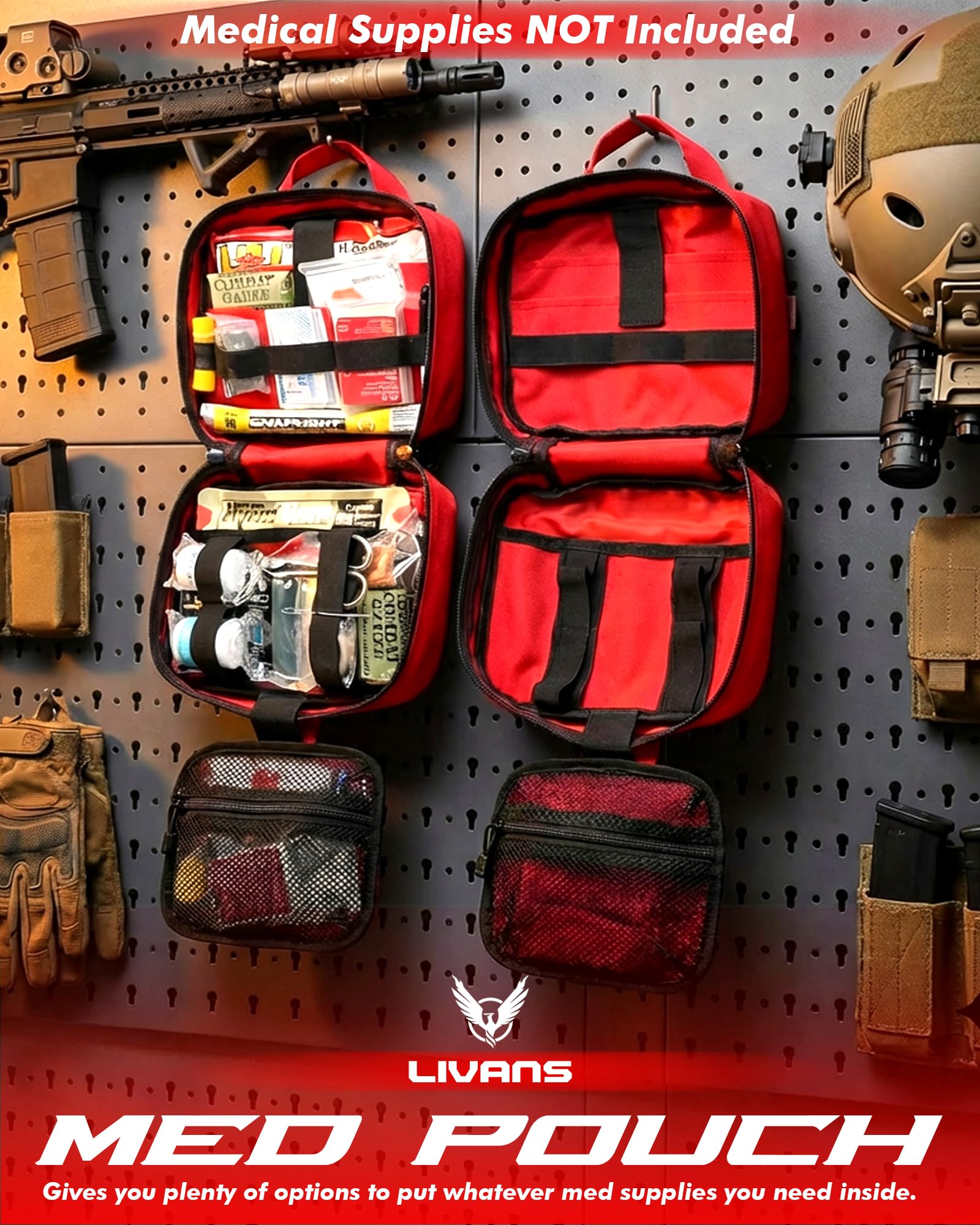 LIVANS Tactical Molle Medical Pouch - Upgraded Size, Large Capacity IFAK Pouch with Detachable Quick Release and Headrest Mount, Includes Flag and Cross Patch