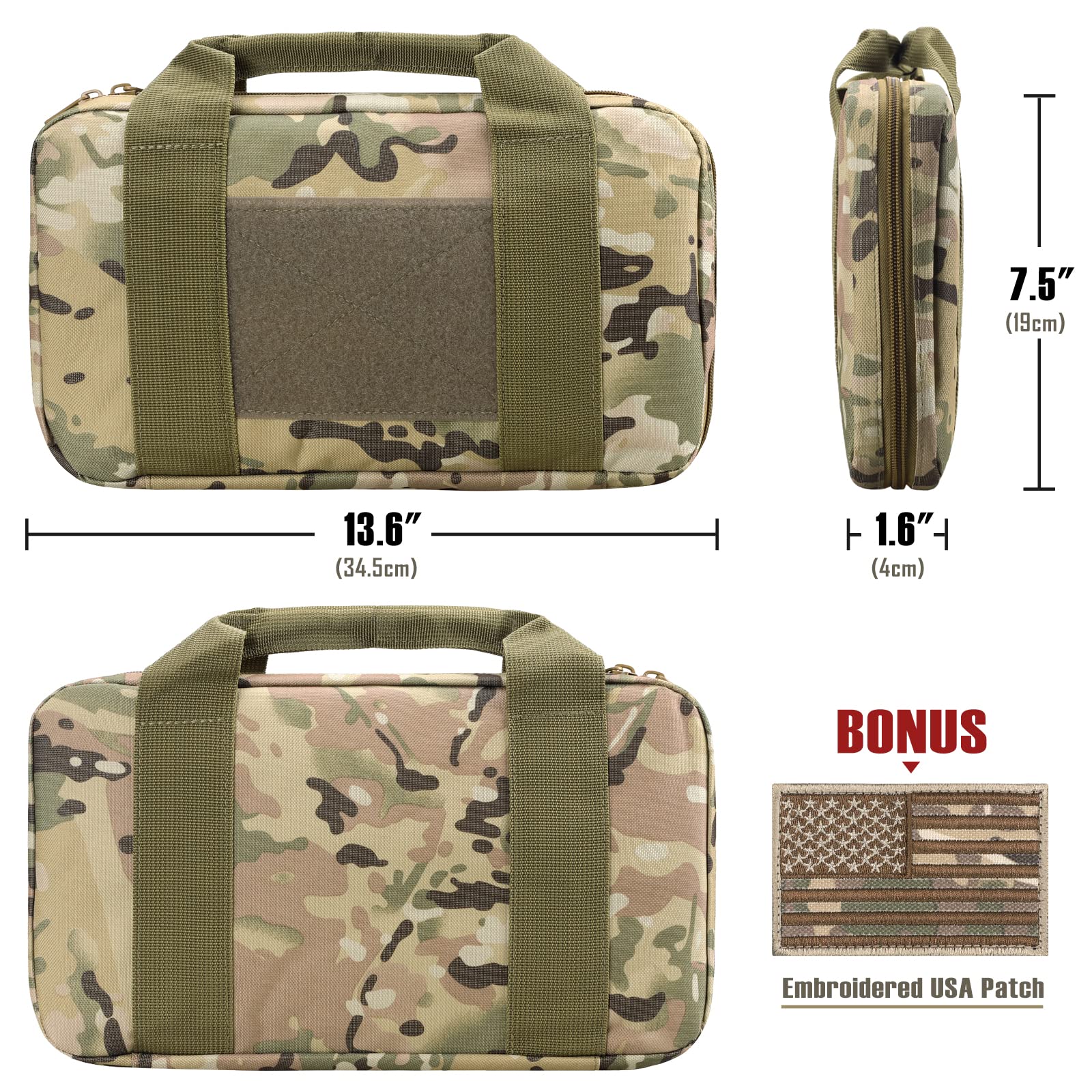 - FREE U.S.A PATCH: Pistol handgun case is constructed with 500D fabric nylon, durable, water-resistant. Handgun case with front loop-field for patches or personal IDs. The free U.S.A flag patch makes the pouch more conspicuous and fashionable.